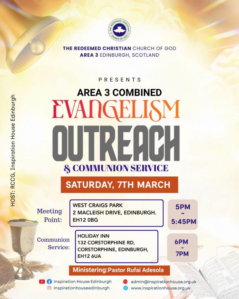 Inspiration House Edinburgh is a parish of the Redeemed Christian Church of God, United Kingdom. Our message and mission is simply to: Seek God, Raise Winners and Expand the Kingdom of God. We carefully create environments that allow people to come as they are and safely explore a faith in Jesus.